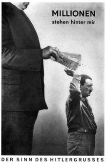 A menudo se olvida o se oculta, pero el fascismo, tanto en Italia como en Alemania, nació del capitalismo. Fue una herramienta para reprimir el movimiento obrero y las fuerzas de izquierda. Sin el apoyo del gran capital, Hitler nunca habría podido desarrollar su partido fascista ni habría sido elegido. Lo mismo ocurre con Mussolini. <https://rebelion.org/wp-content/upl...> Foto: fotomontaje de John Heartfield para la revista AIZ Berlín, 16 de octubre de 1932, «El significado del saludo hitleriano. Hay millones detrás de mí».